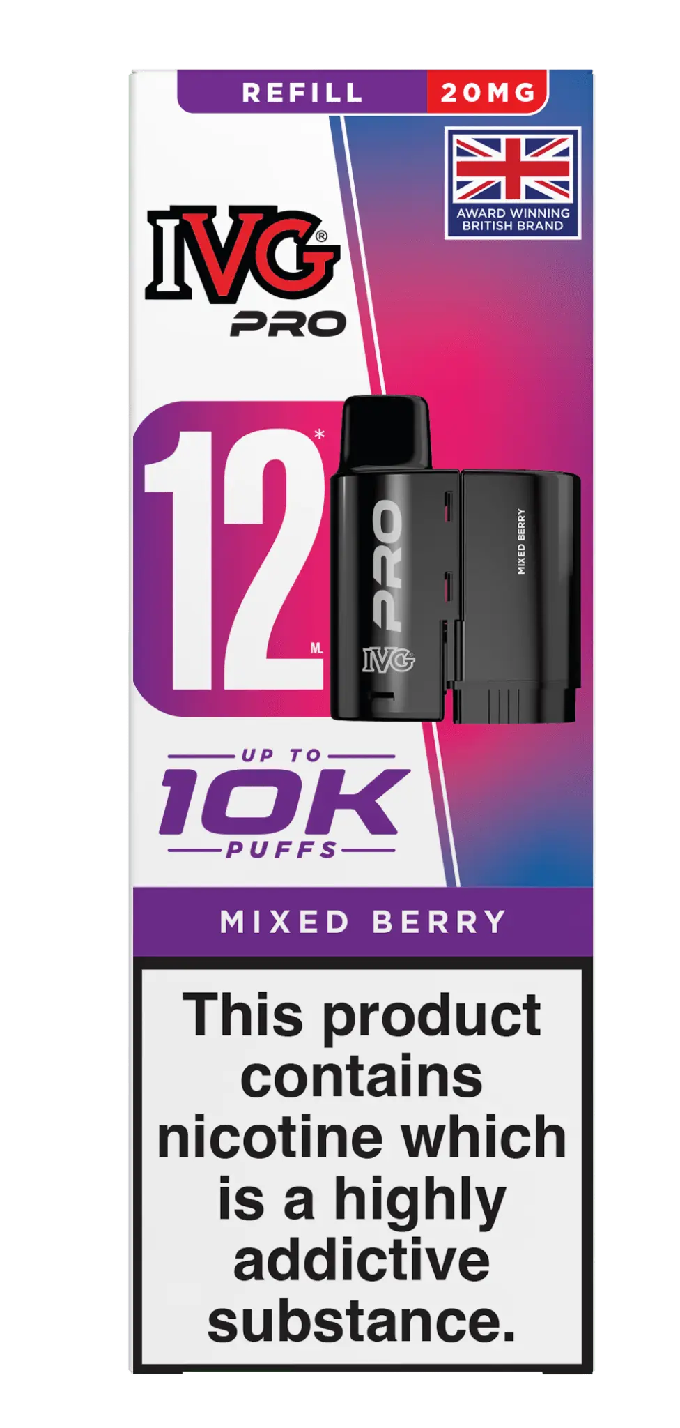 ✔ 10ml auto-refilling container prefilled with award-winning IVG 20mg (2%) nic salt e-liquid